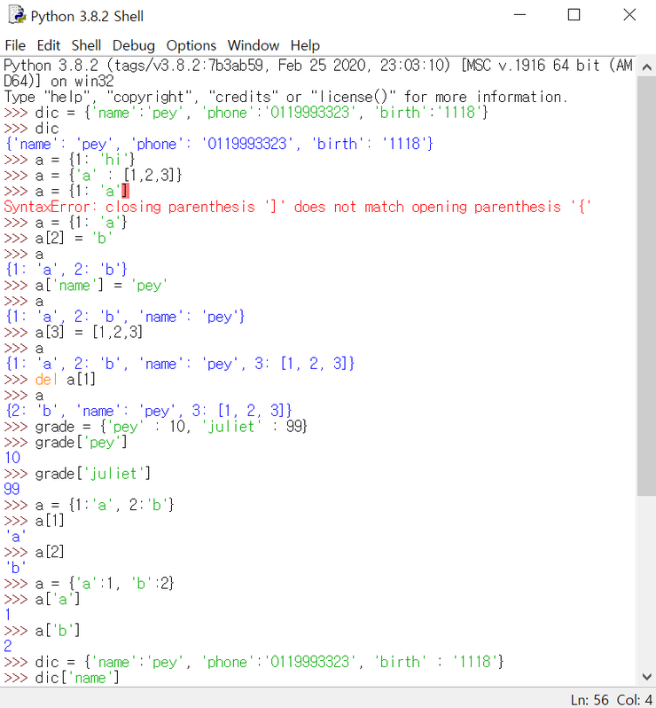 리스트 [1,2,3]인데 a[4]를얻으려고 하면 IndexError 등